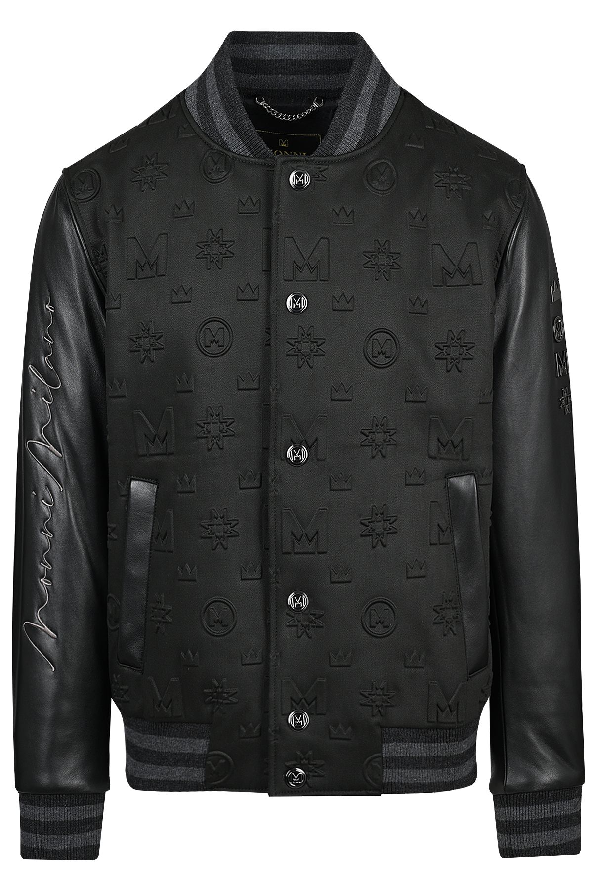 Луксозно мъжко яке бомбър със силиконови щампи в черно
