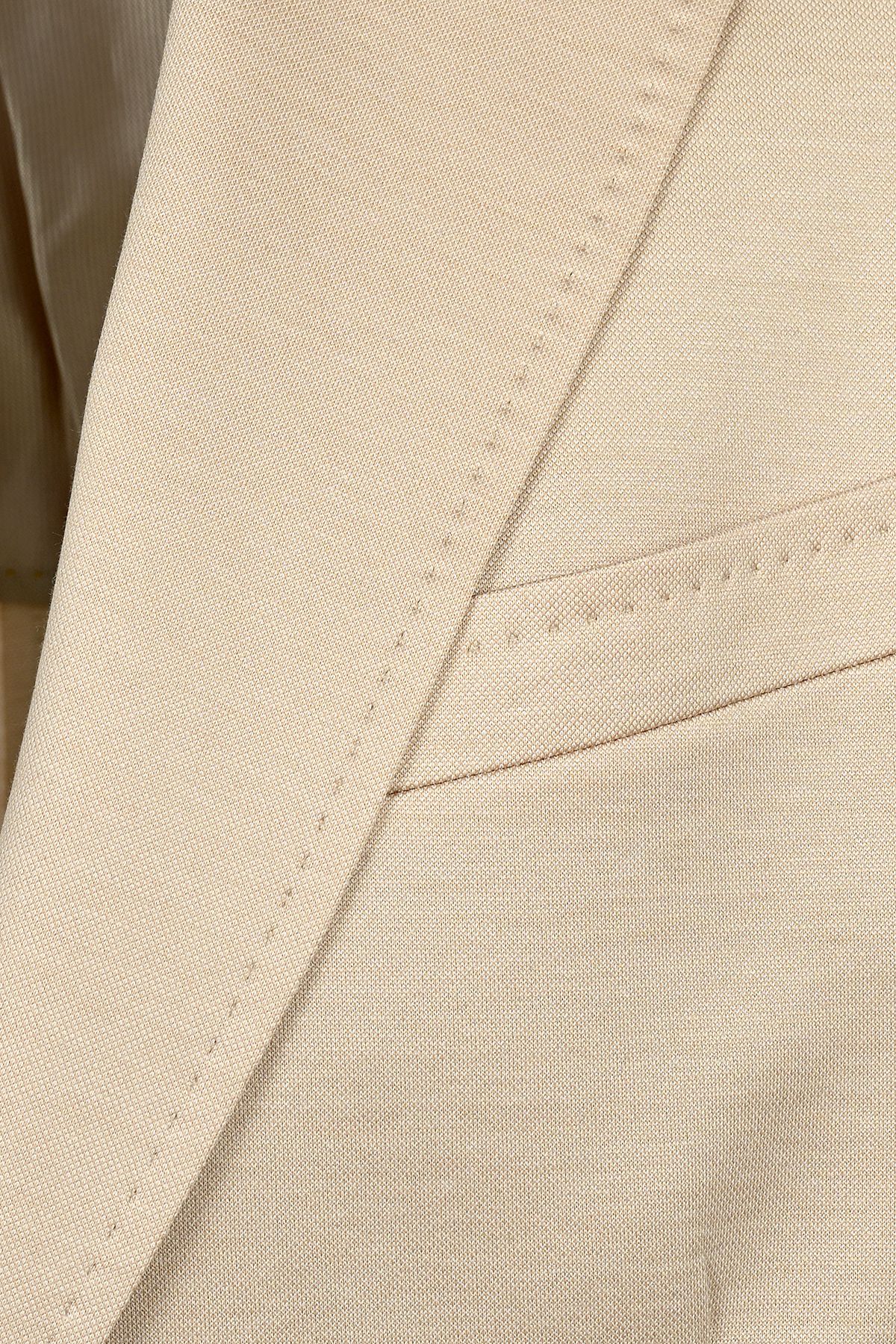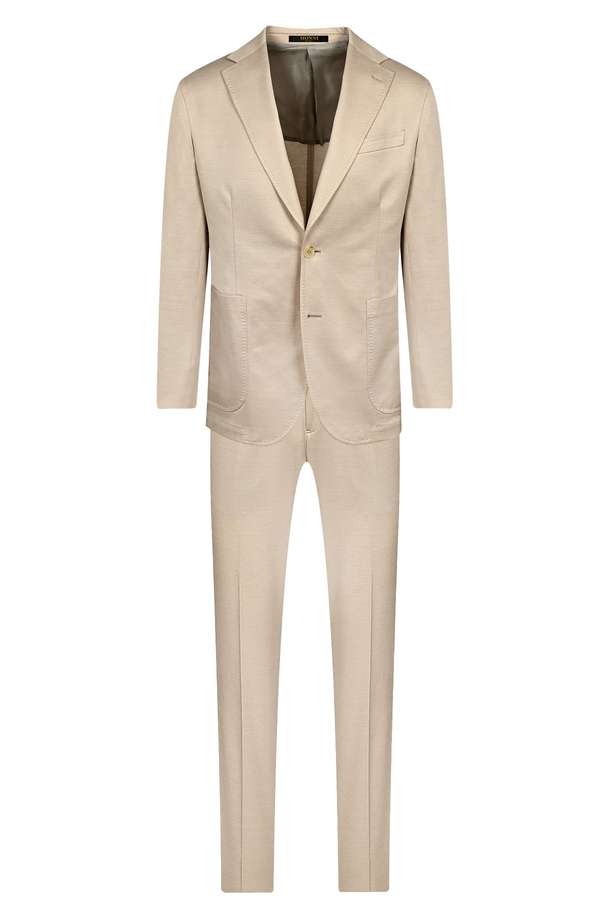 Мъжки луксозен костюм в бежово от италианско памучно трико