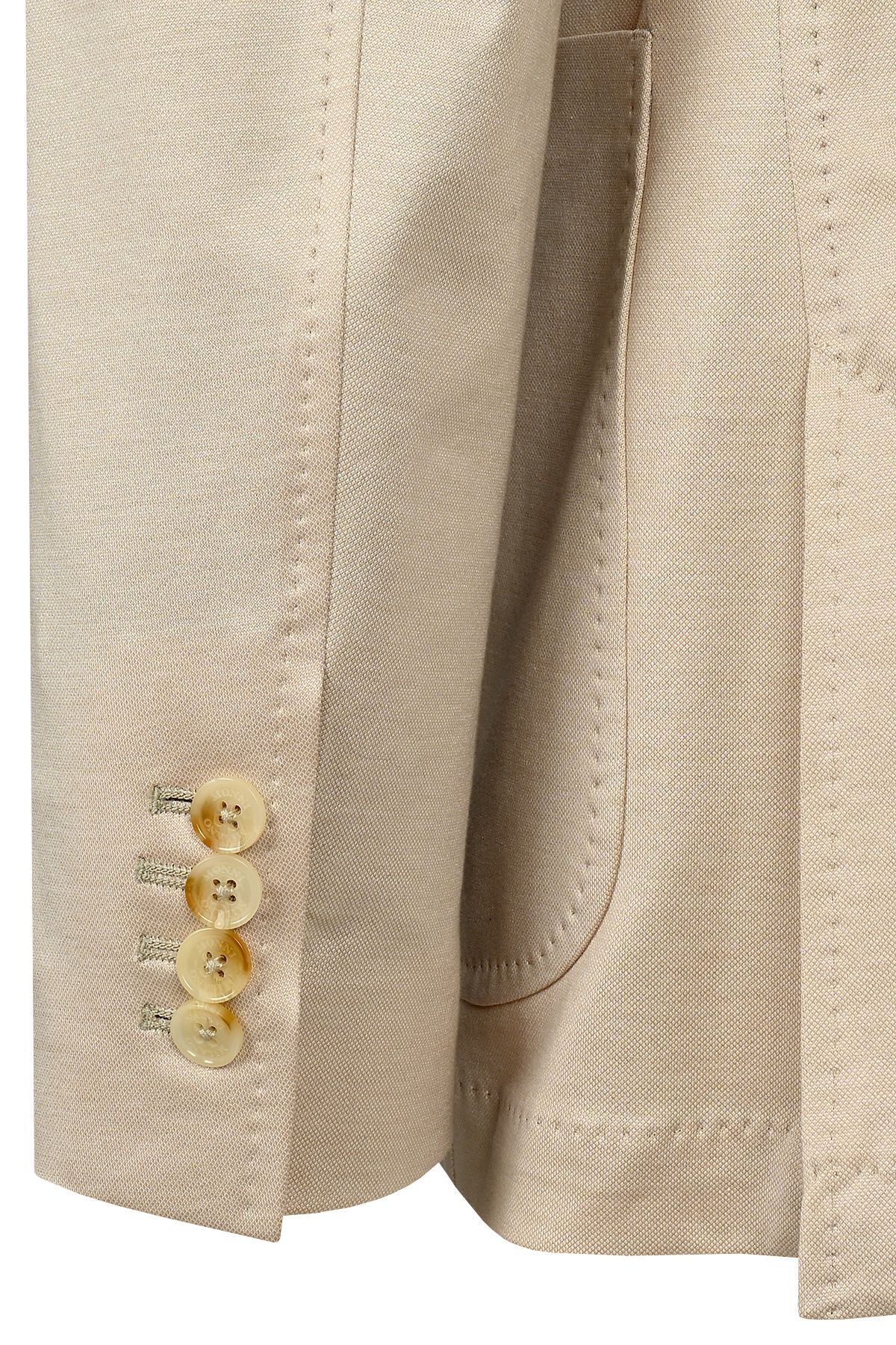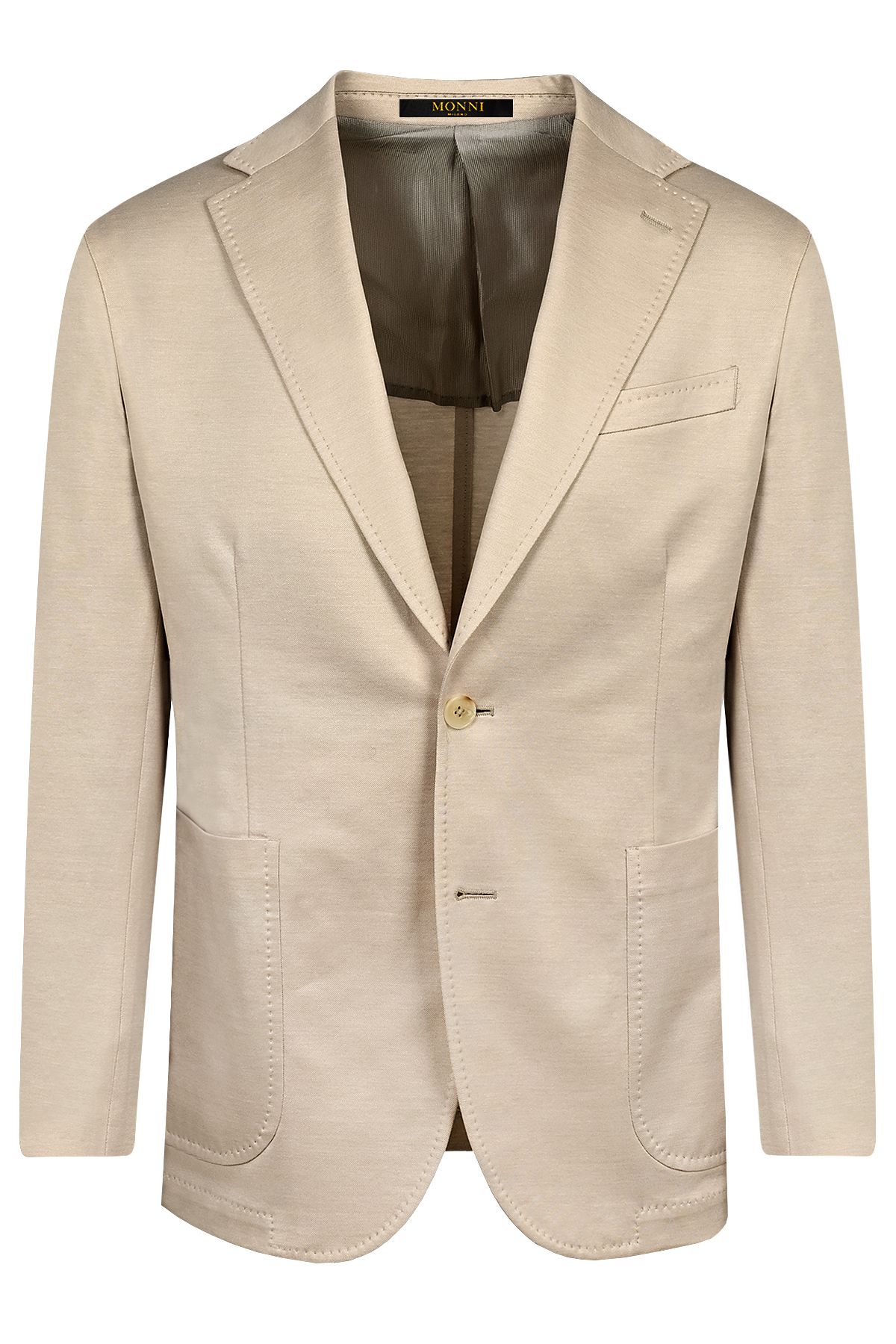 - Вталено олекотено сако без вати и фитили в раменете, със спортни външни джобове и свален класически ревер.