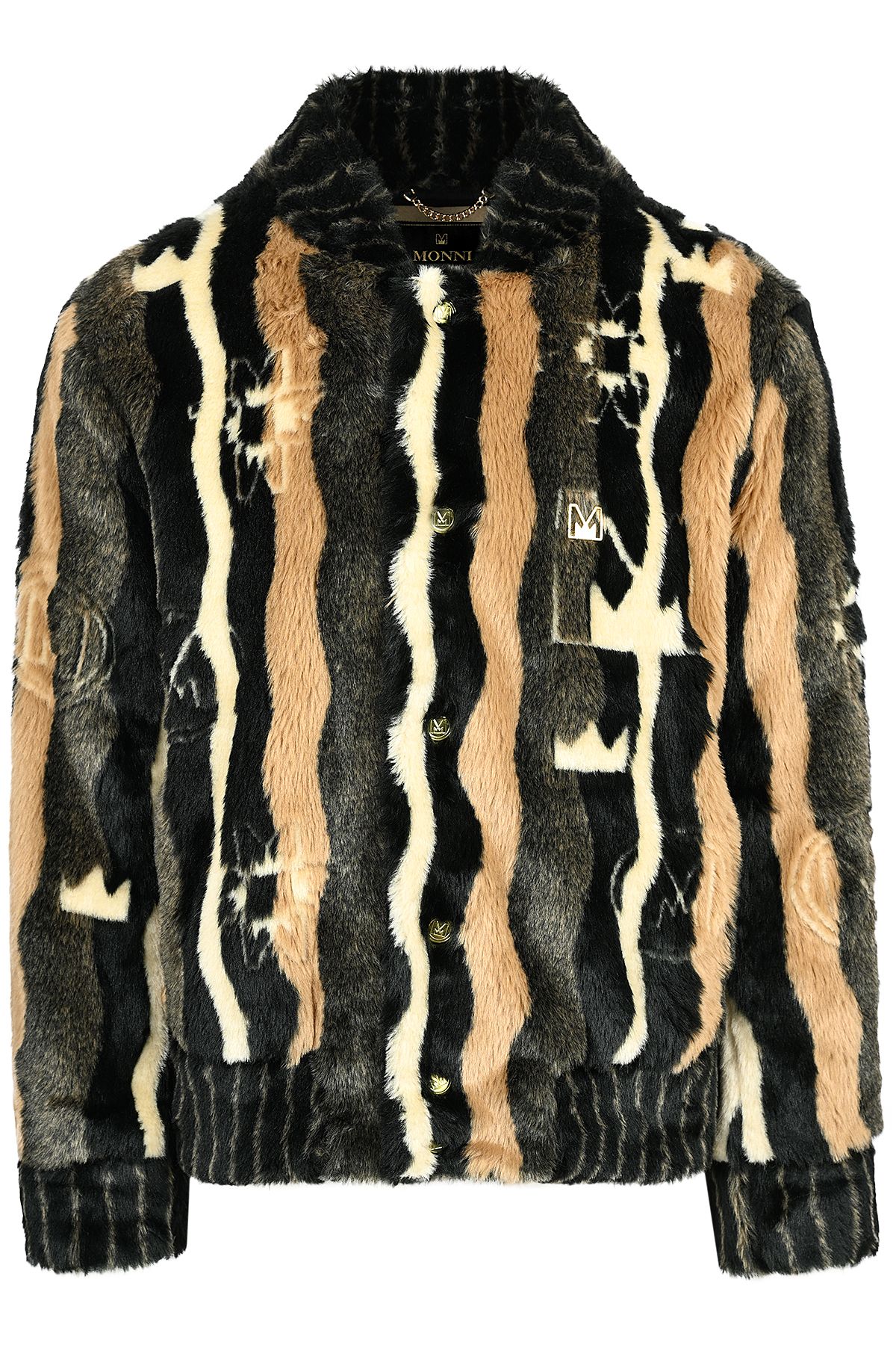 Мъжко дизайнерско луксозно яке с лого десен в черно и бежово