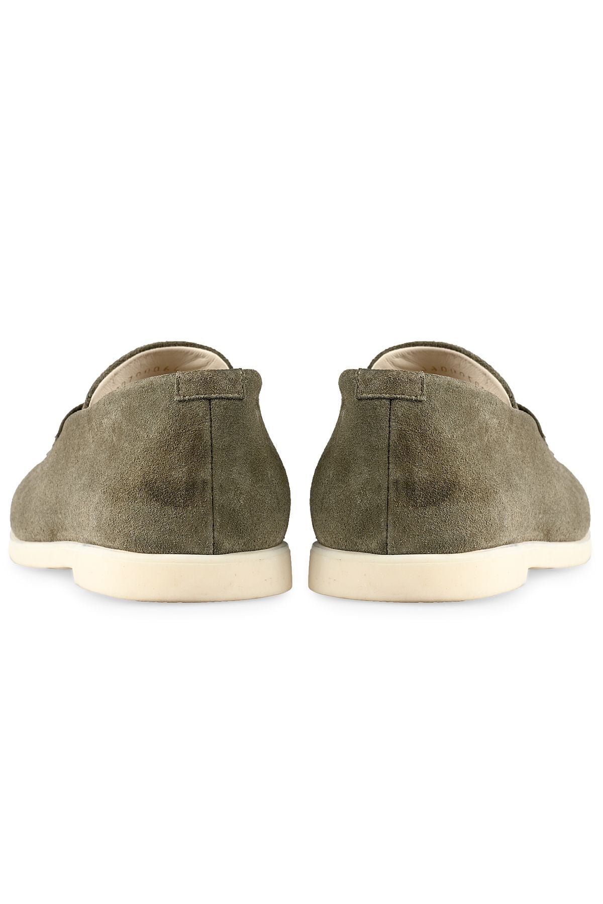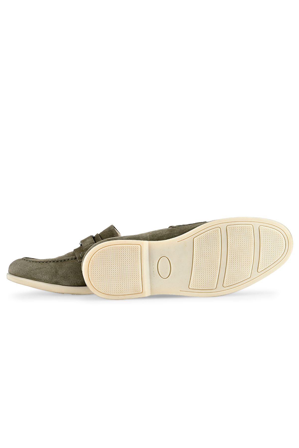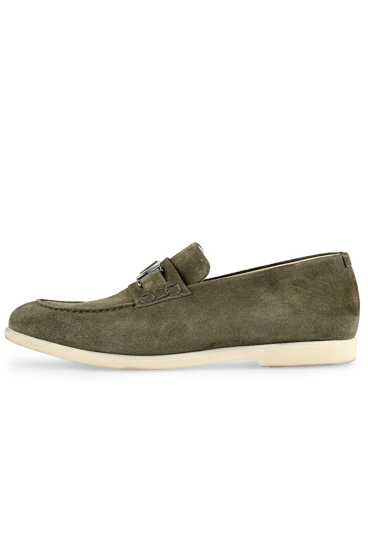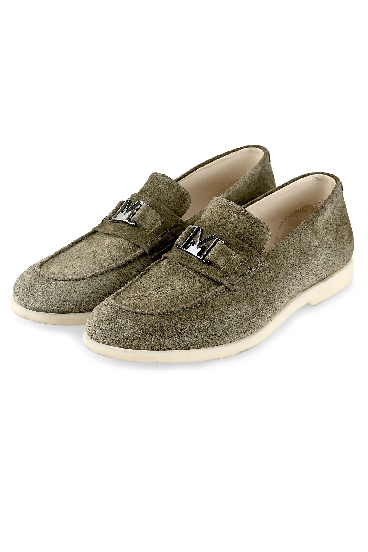 Мъжки дизайнерски велурени мокасини в зелено с метален елемент