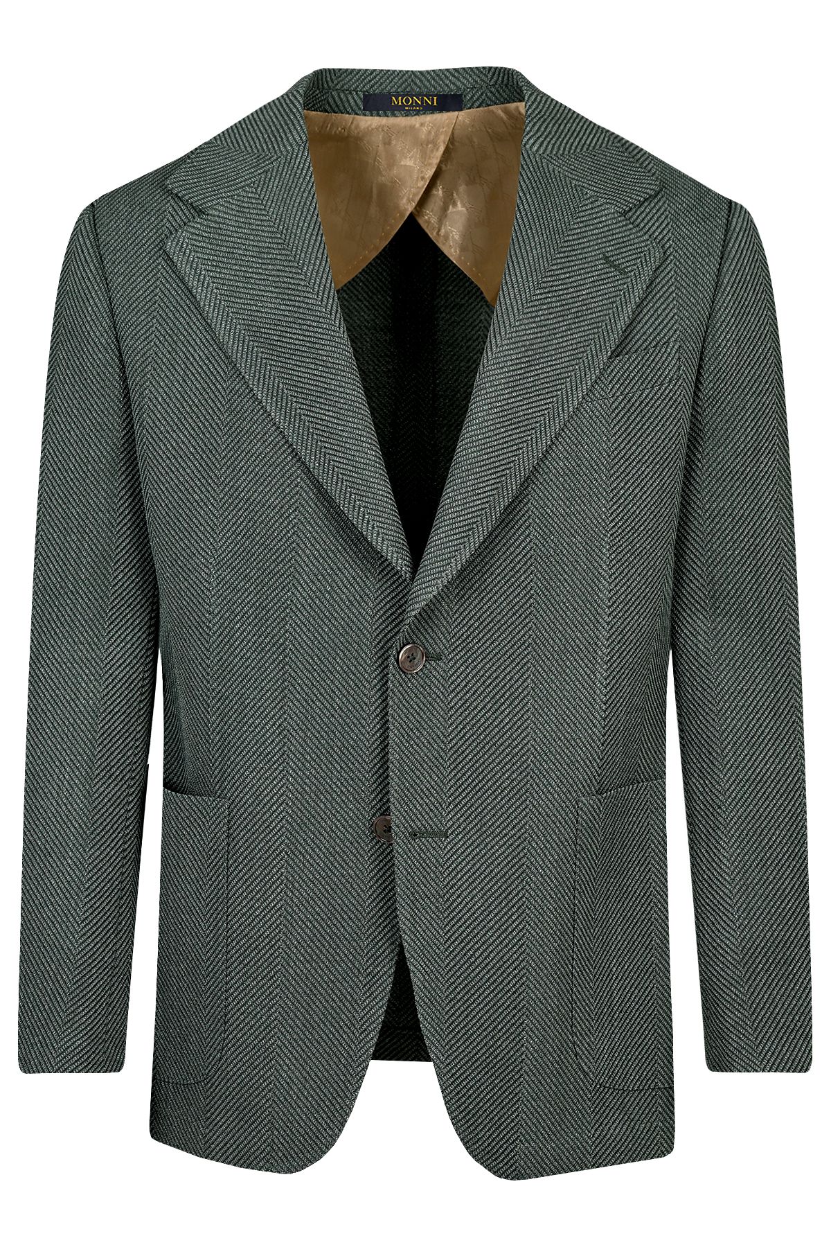 Мъжко луксозно дизайнерско сако от лен и вълна в зелено