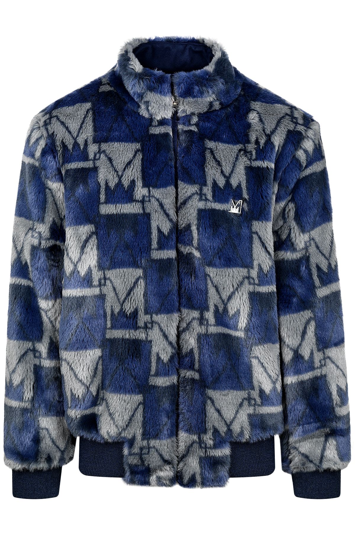 Мъжко луксозно дизайнерско яке с каре десен в сиво синьо