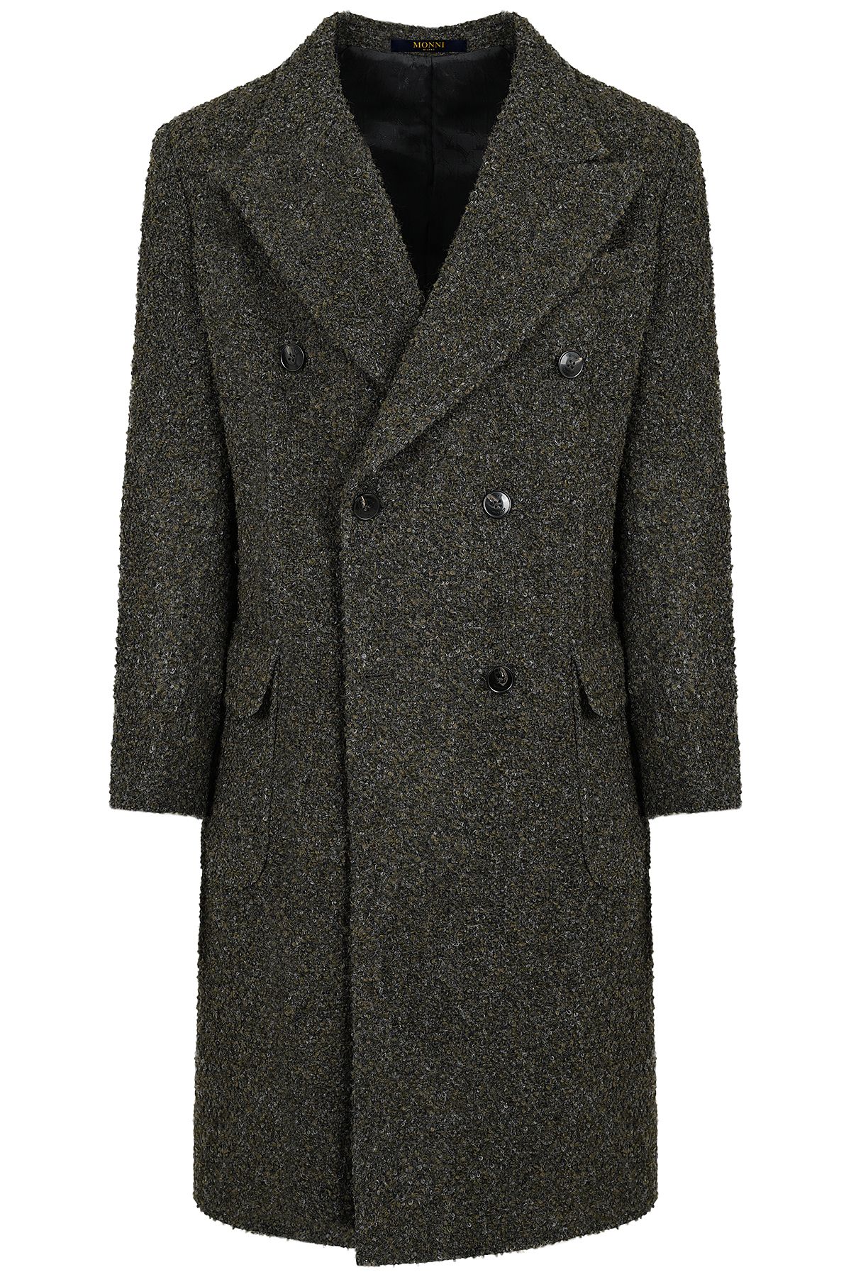Мъжко луксозно свободно палто от италиански плат букле в зелено