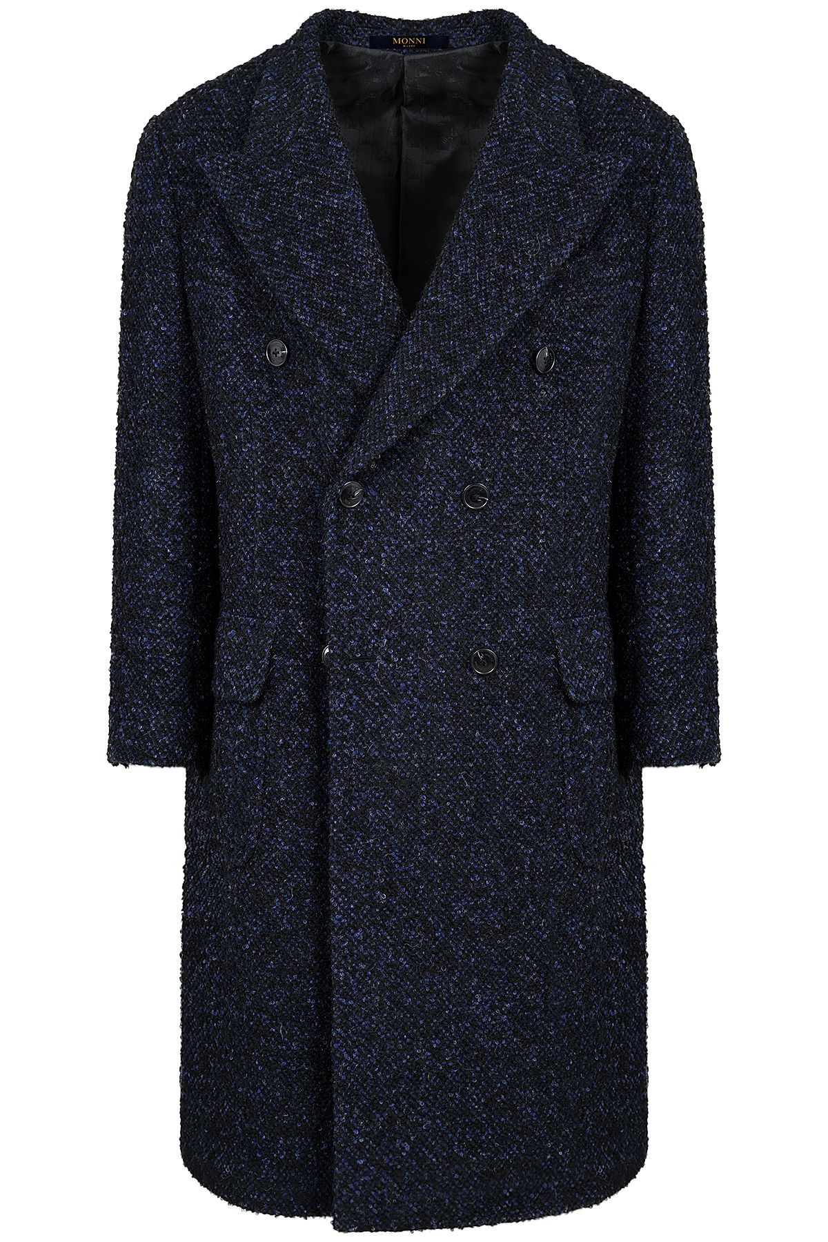 Мъжко луксозно свободно палто от италиански плат букле в синьо