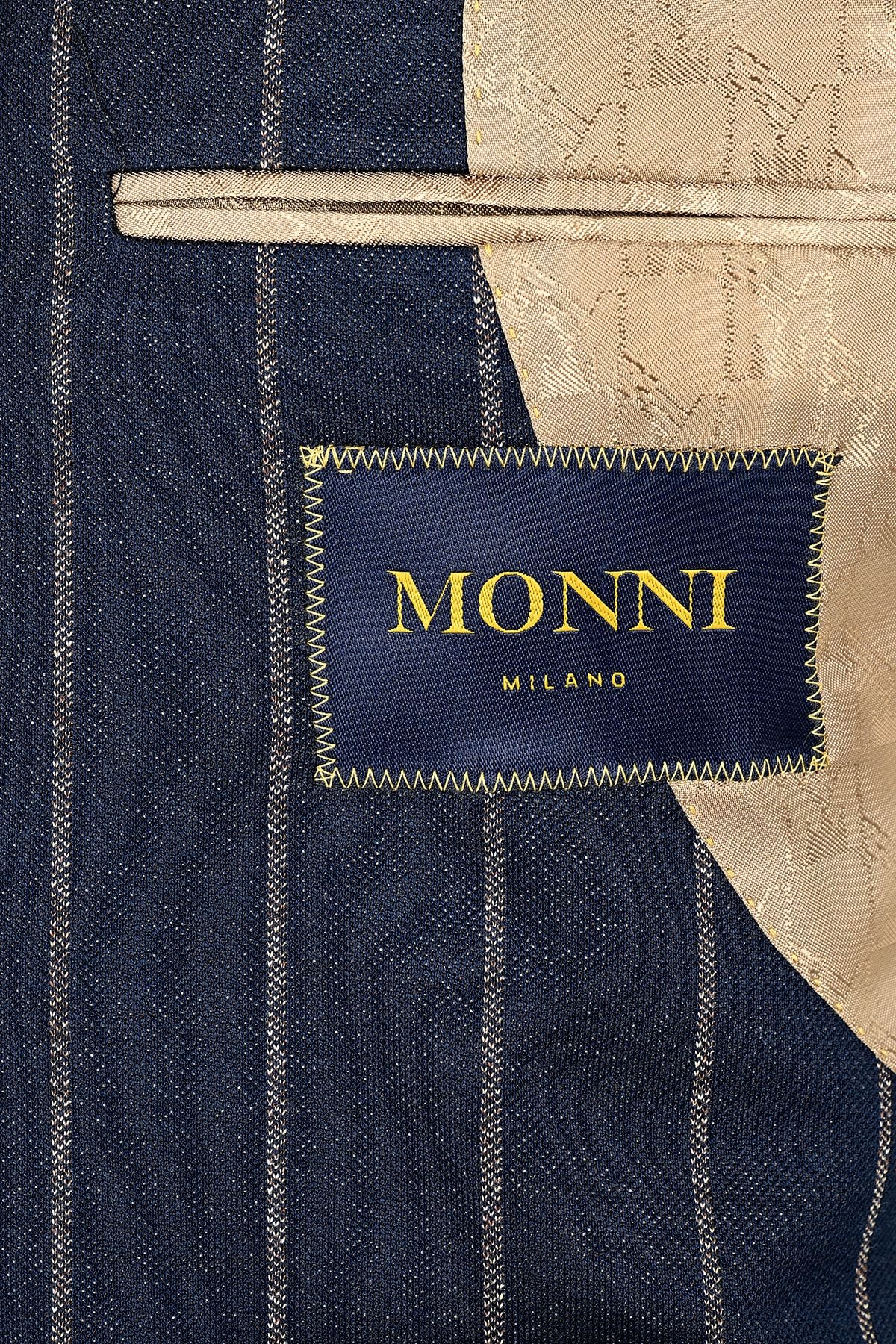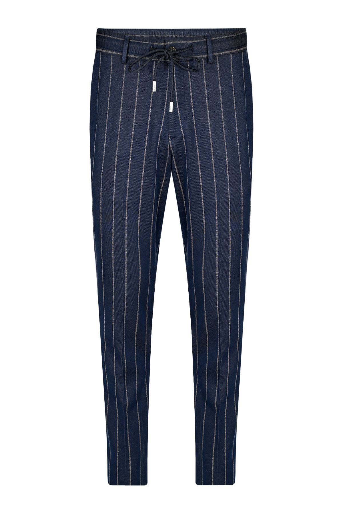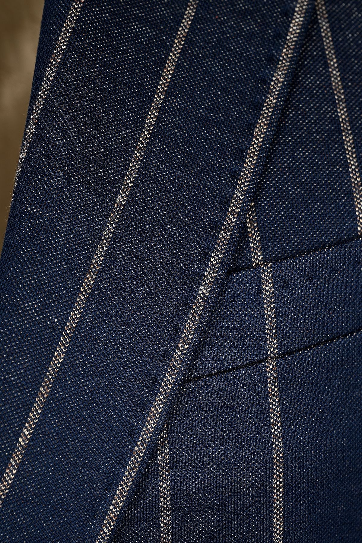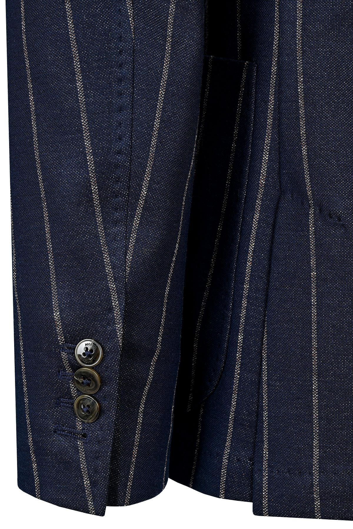 Мъжки втален раиран костюм от структурен памук в тъмносиньо