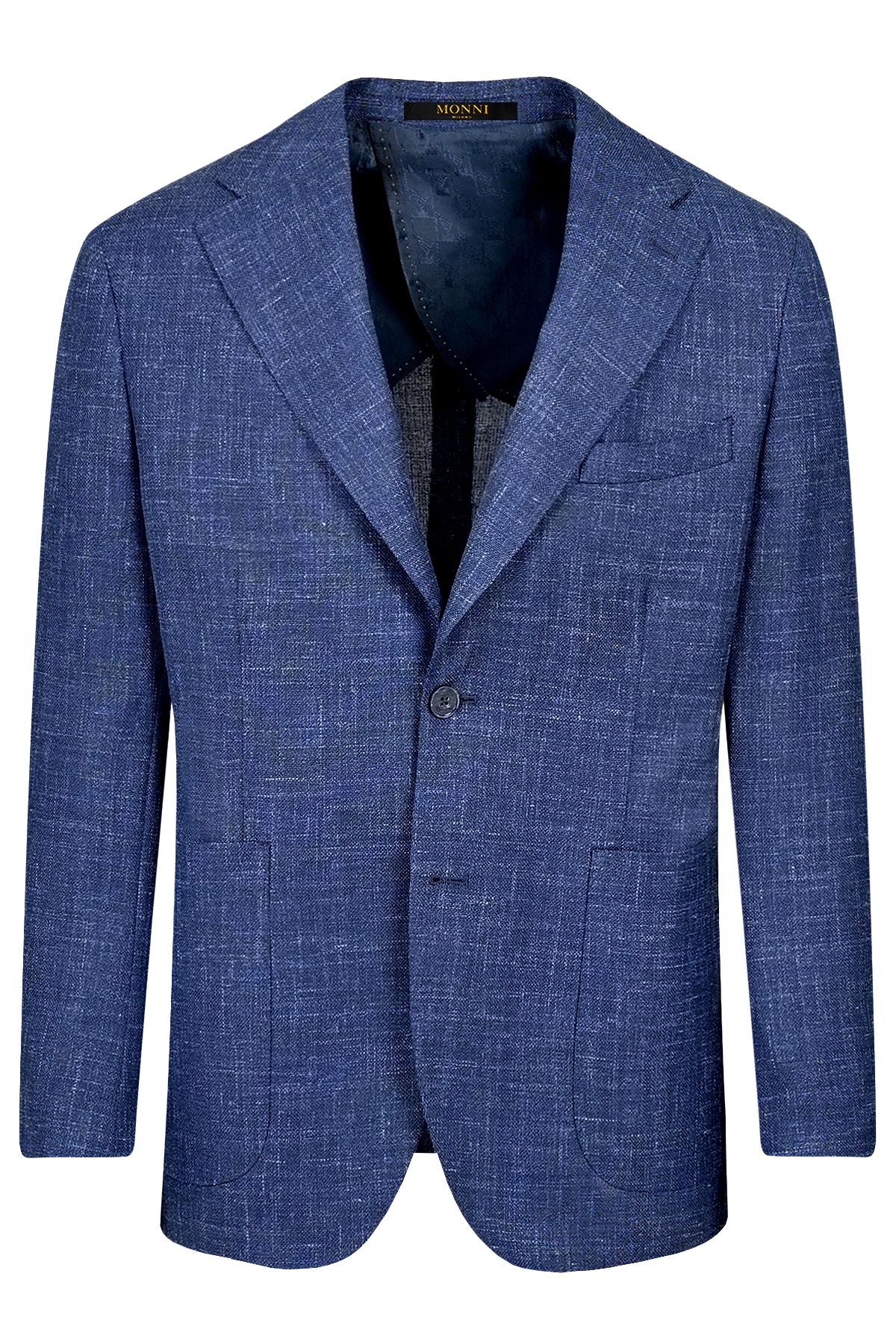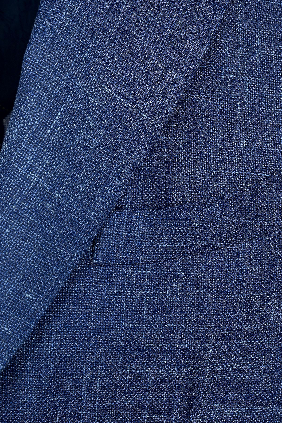Мъжко луксозно олекотено сако от вълна, лен и коприна в синьо