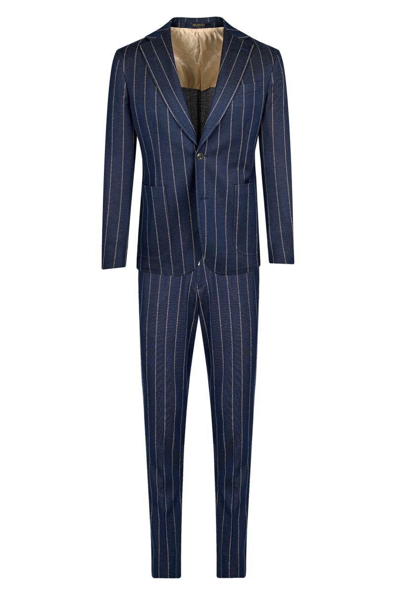 Мъжки втален раиран костюм от структурен памук в тъмносиньоТолкова ниска, колкото 785,00 € | 1 535,33 лв.