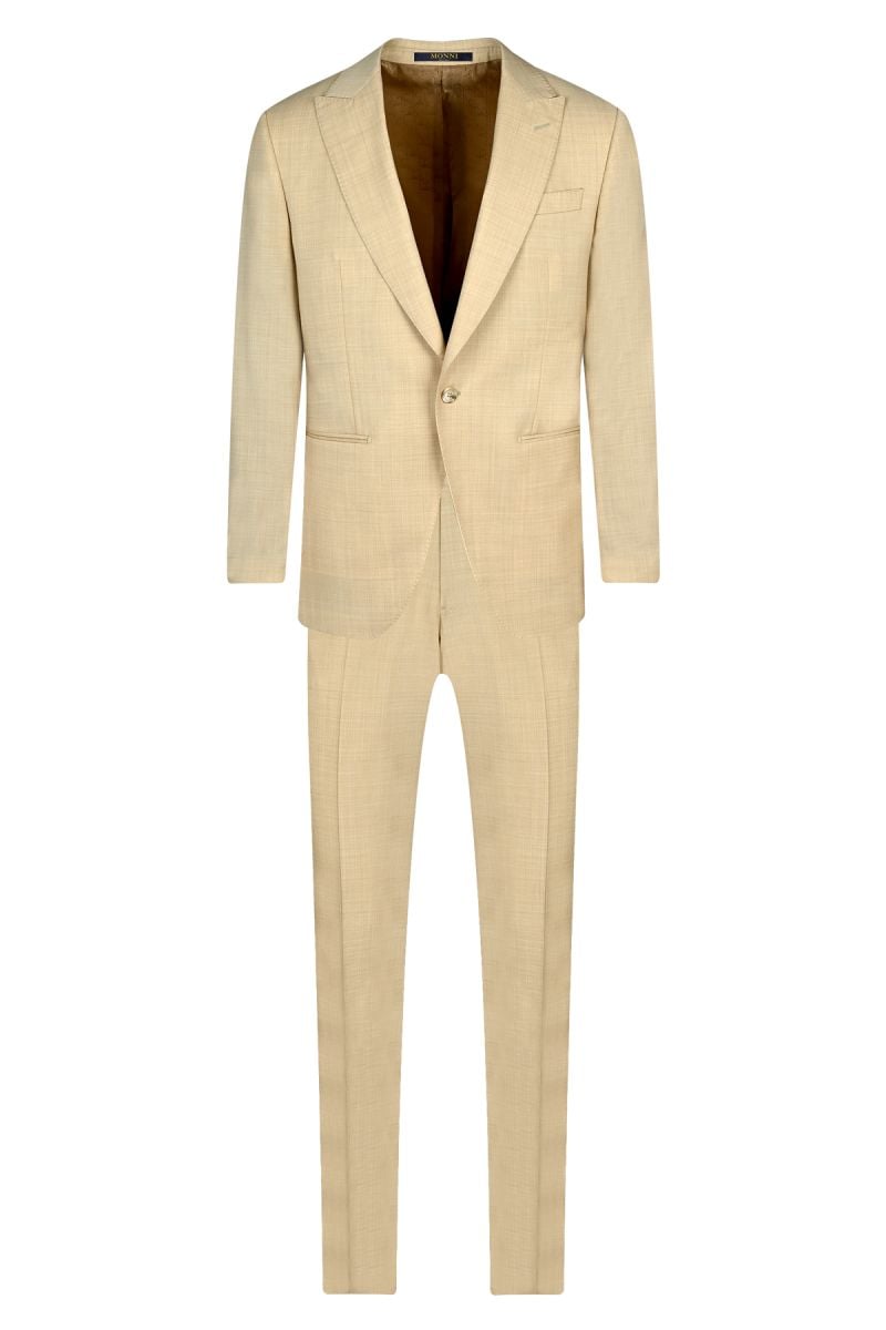 Мъжки официален костюм с едно копче и филетки в светлобежовоТолкова ниска, колкото 695,00 € | 1 359,30 лв.