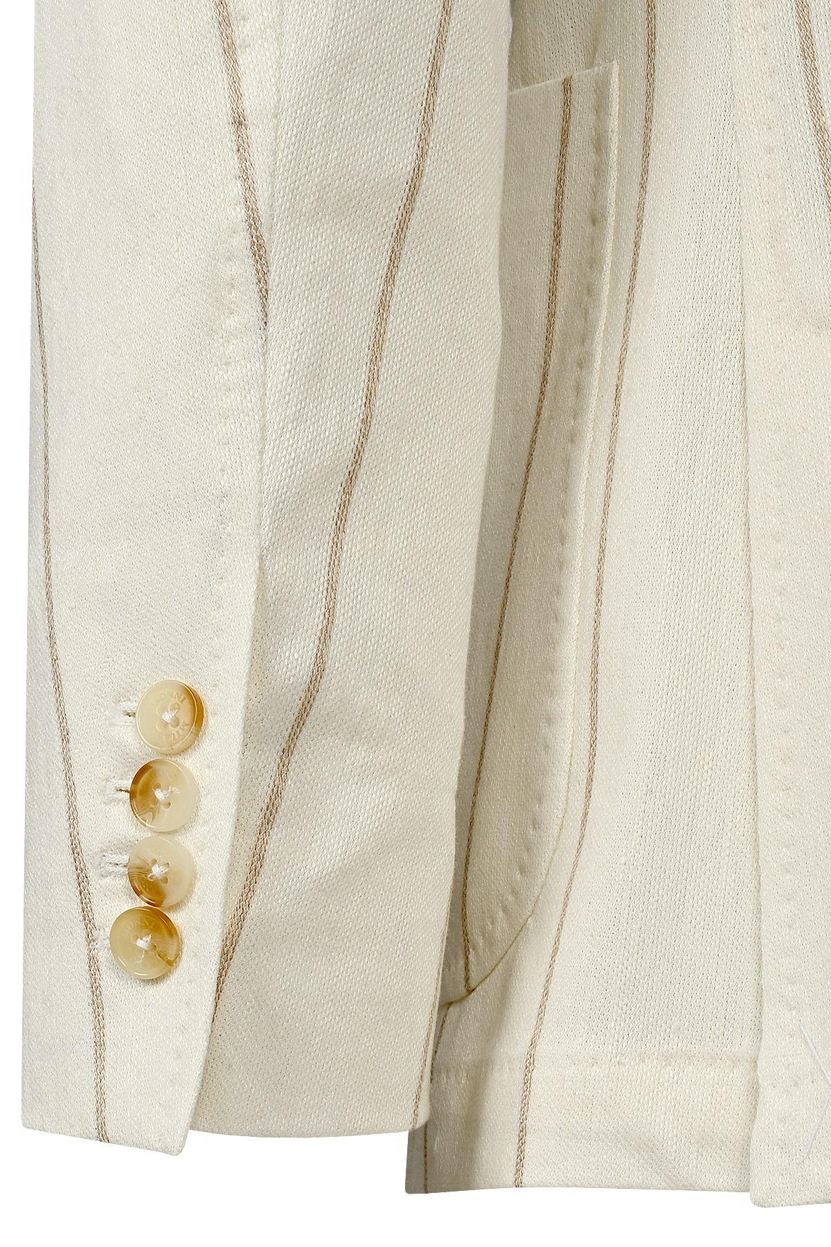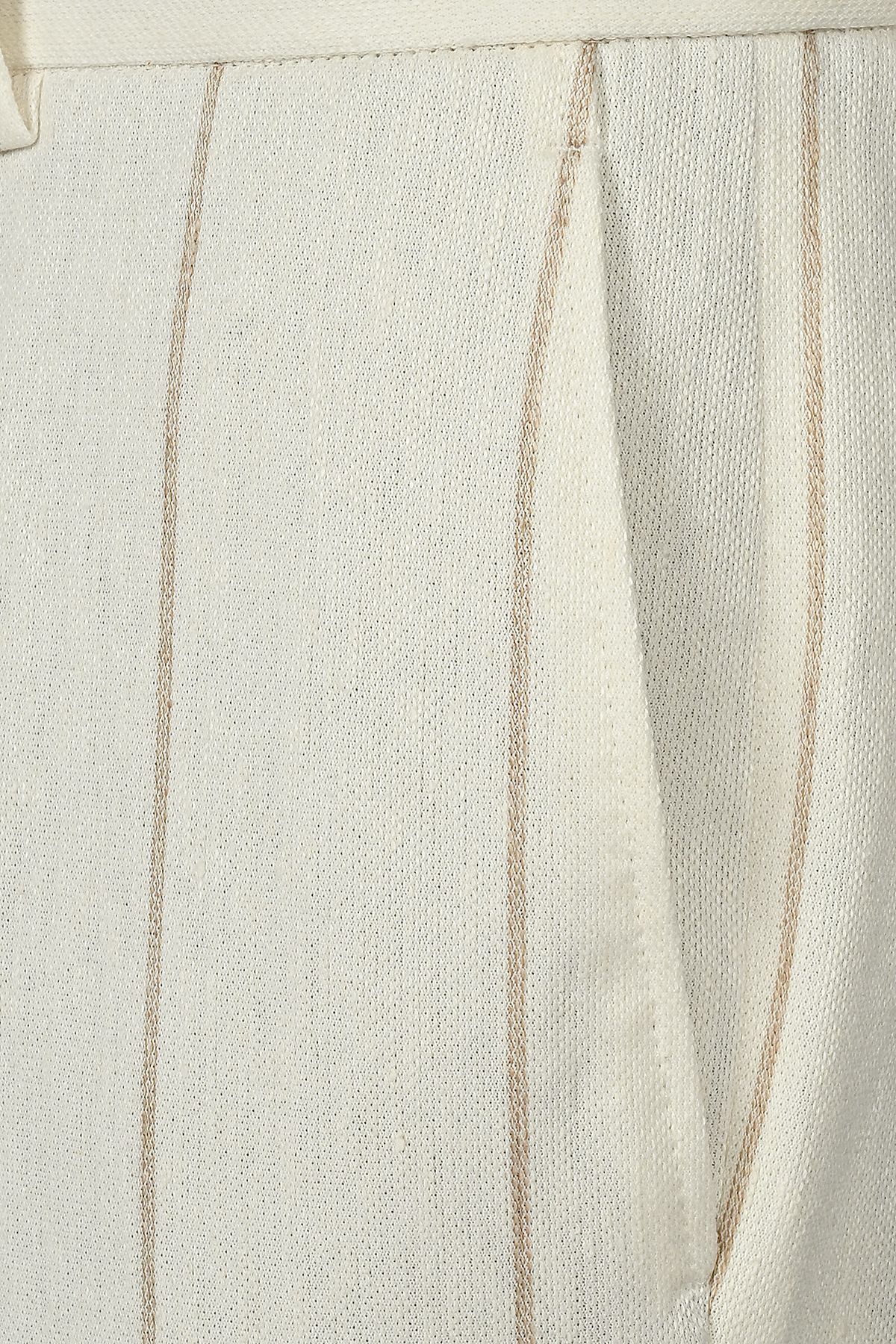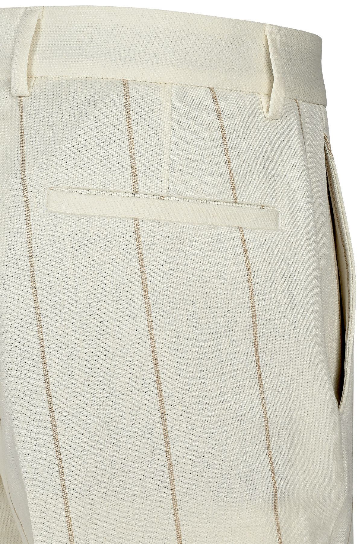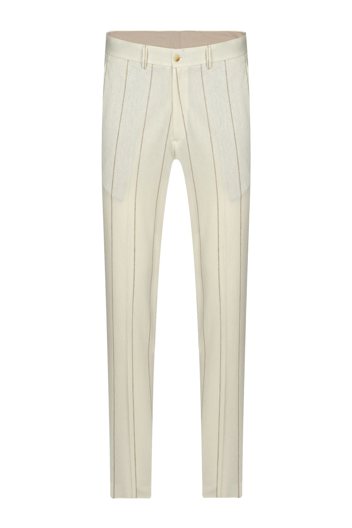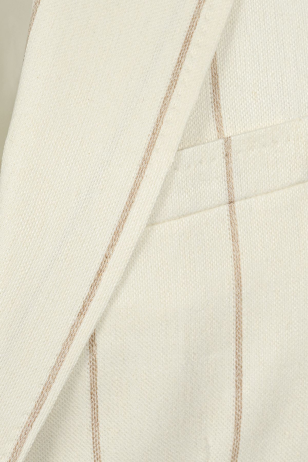 Мъжки луксозен втален костюм в екрю с райе с лен и памук