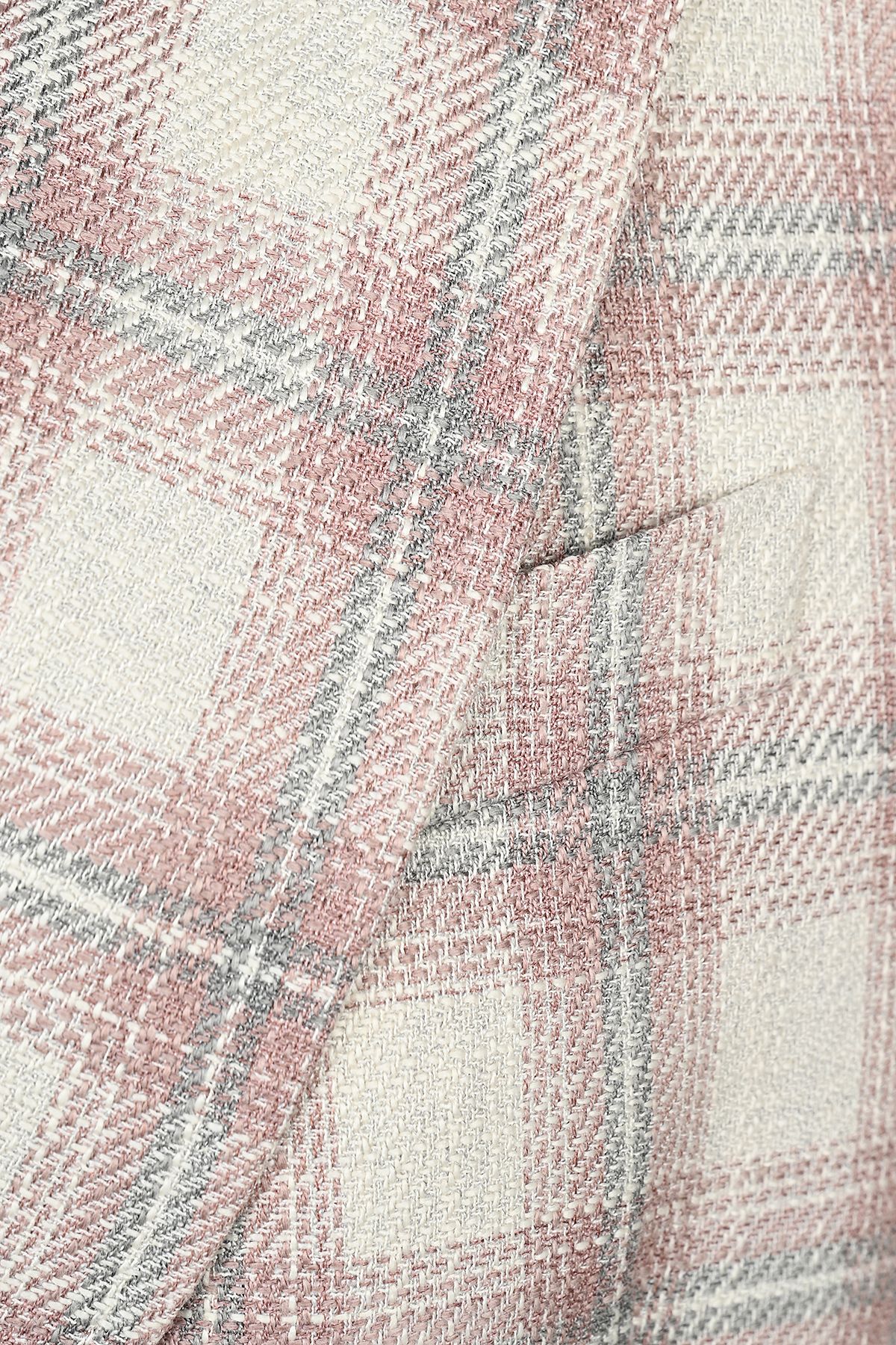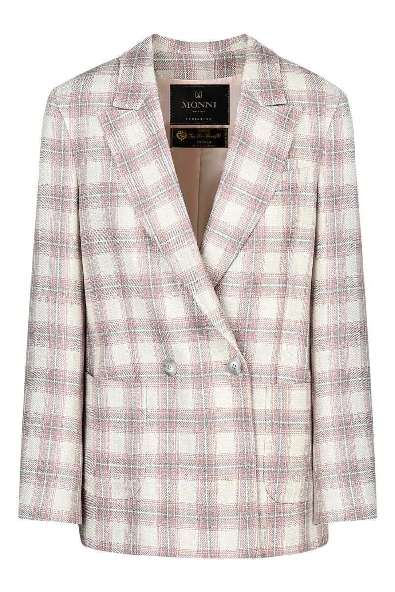 Луксозно двуредно карирано дамско сако с външни джобове в плат Loro Piana е достъпен за закупуване на стъпки от 1